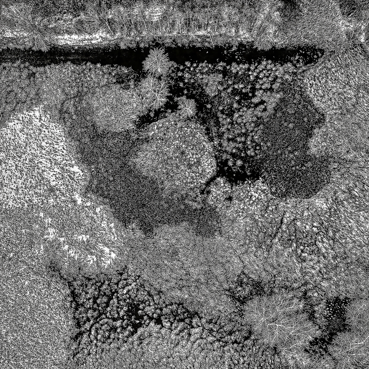 DRONESCAPES and AERIALS—particularly those that exclude the horizon—occupy a borderland between landscape and abstraction. They function as “concrete abstractions,” simultaneously documentary and aesthetic. The great aerial photographers—William Garnett, Arthus-Bertrand, Edward Burtynsky, Tom Hegen, and the highly accomplished but less widely known Icelanders Sigurgeir Sigurjónsson and Ragnar Axelsson—share a precise, masterful sense of composition. Their images occasionally drift into figuration, though this is rarely acknowledged.